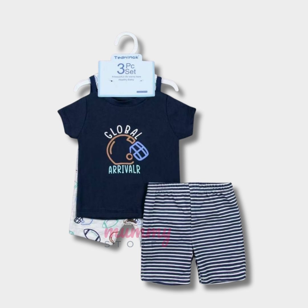3-Piece Outfit Set for Boys Baby OOTD Playset with Jumper Short Singlet