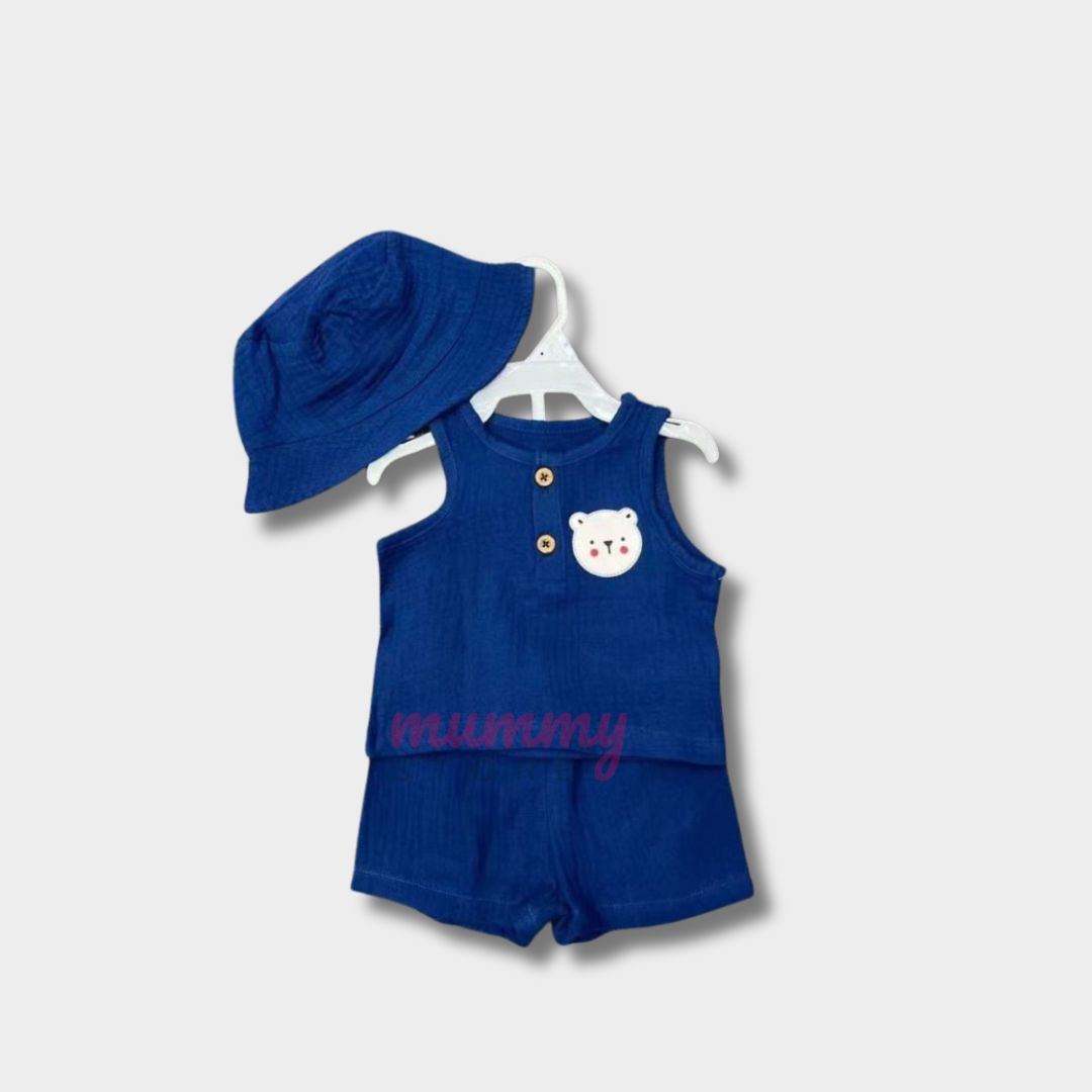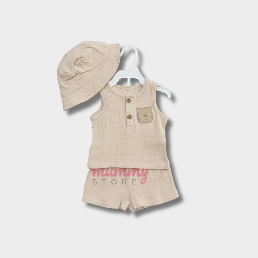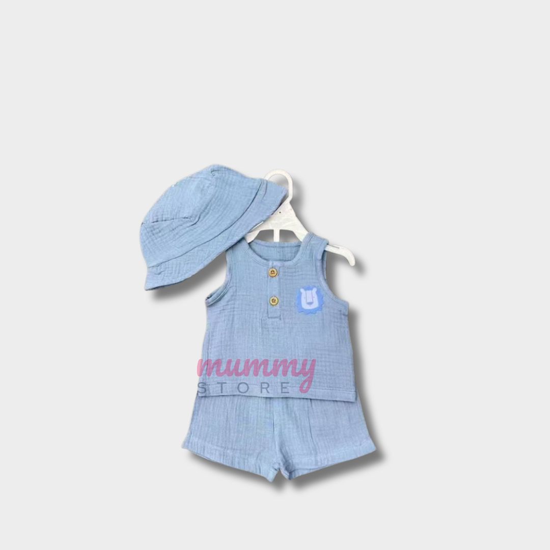 Bucket Hat Baby Set Singlet Short Pant Tshirt 3in1 OOTD Muslin Cotton Premium Willow Whimsy Two Ways