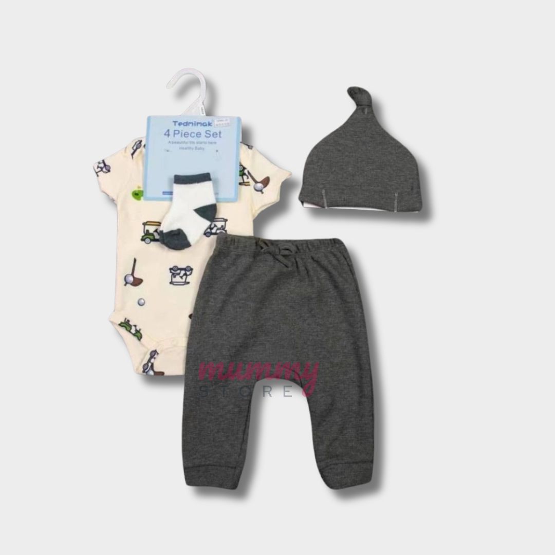 Romper Set Long Pants Baby OOTD Cap Bucket Hat Baby Hat 3D Set Hanger Socks