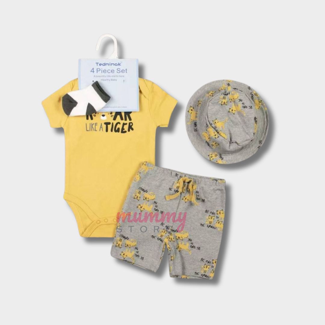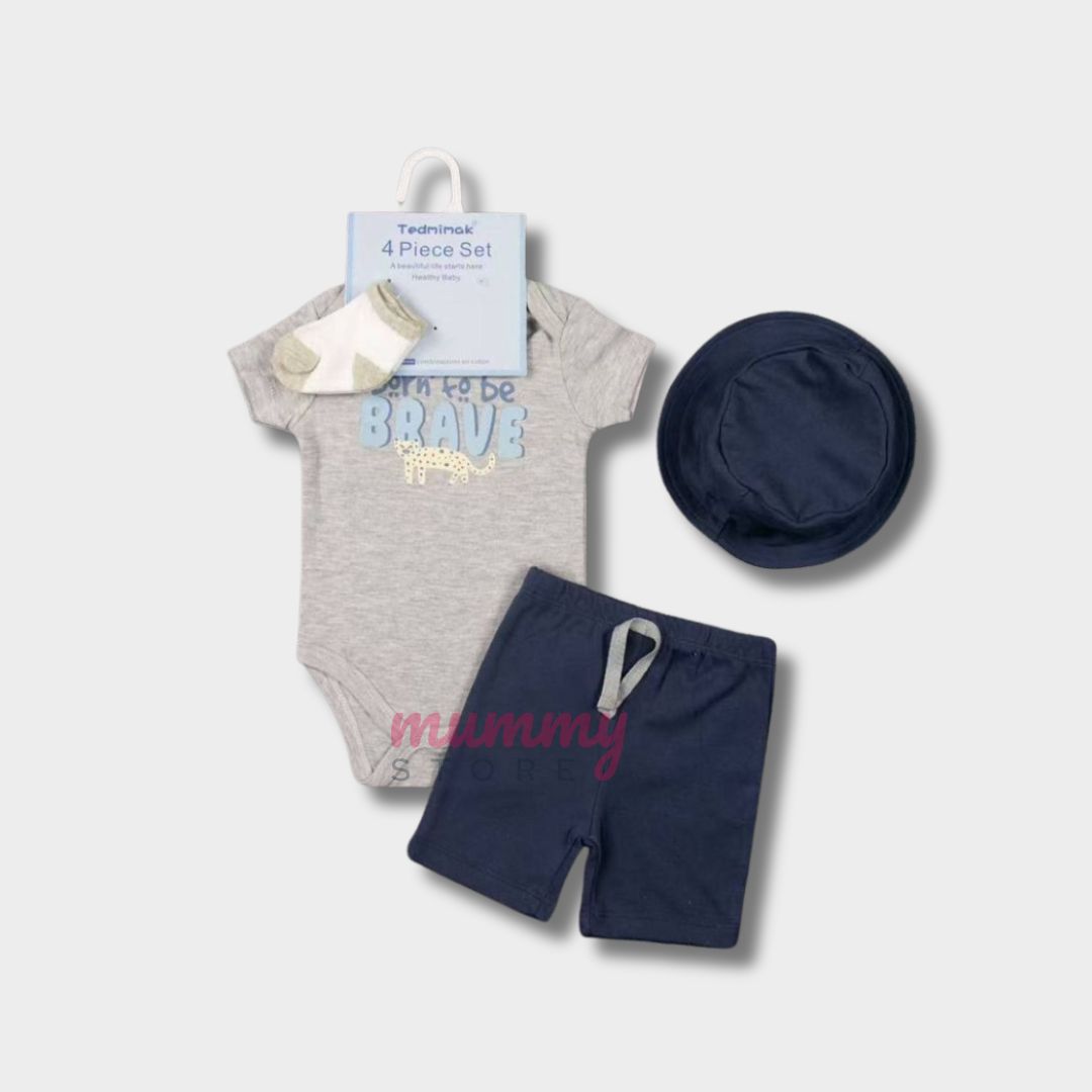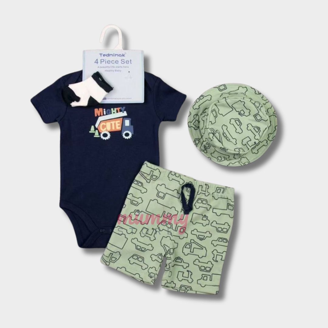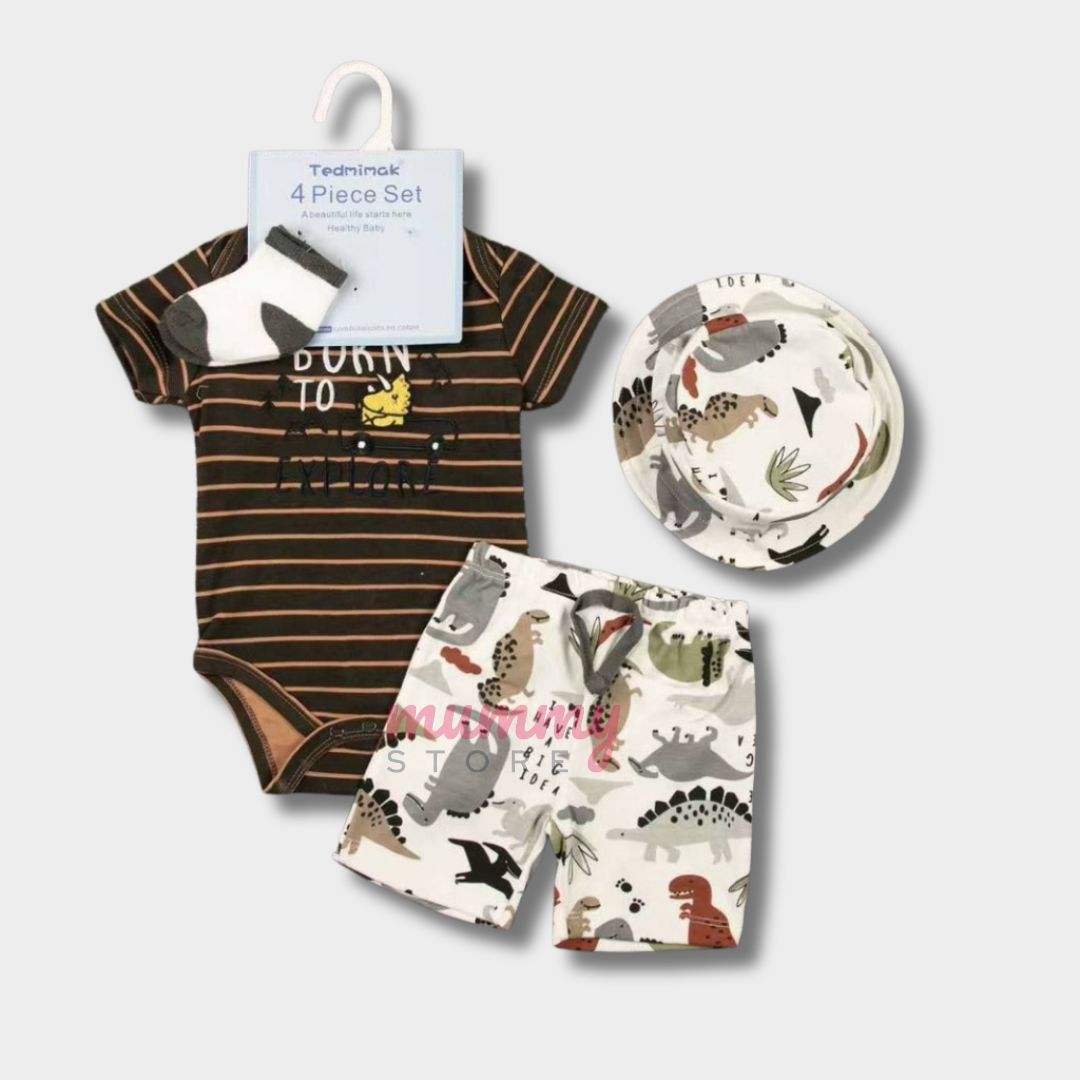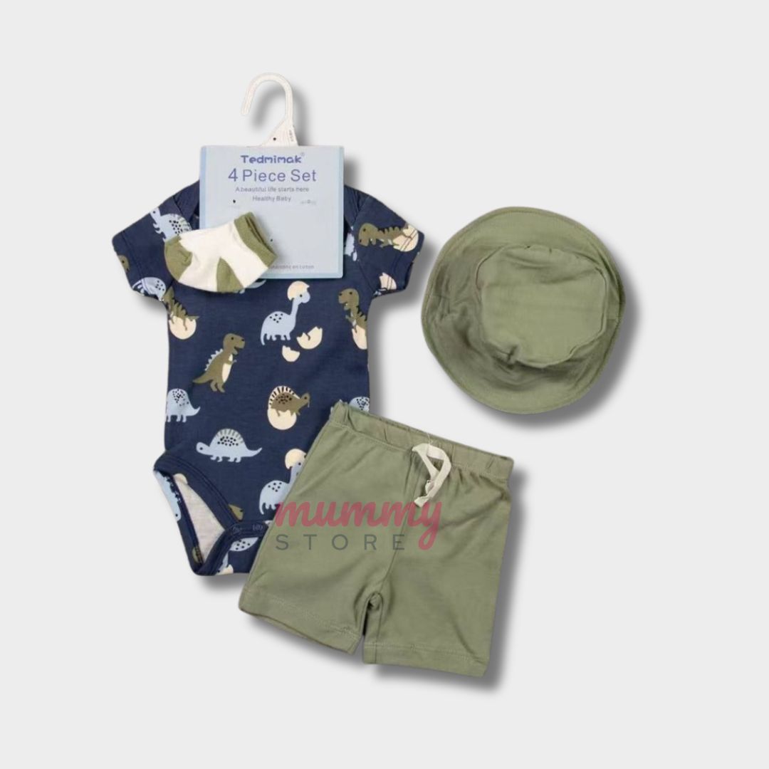 Set 4In1 Baby Set Bucket Hat Two Ways Socks Romper Shorts Cute Material Cotton OOTD Set